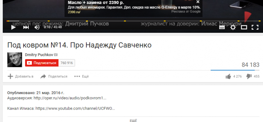 Например, этот ролик уже много людей за неделю посмотрели. Выложите вы свой ролик со своими рассуждениями и мы потом сравним, сколько человек вас за неделю посмотрит.