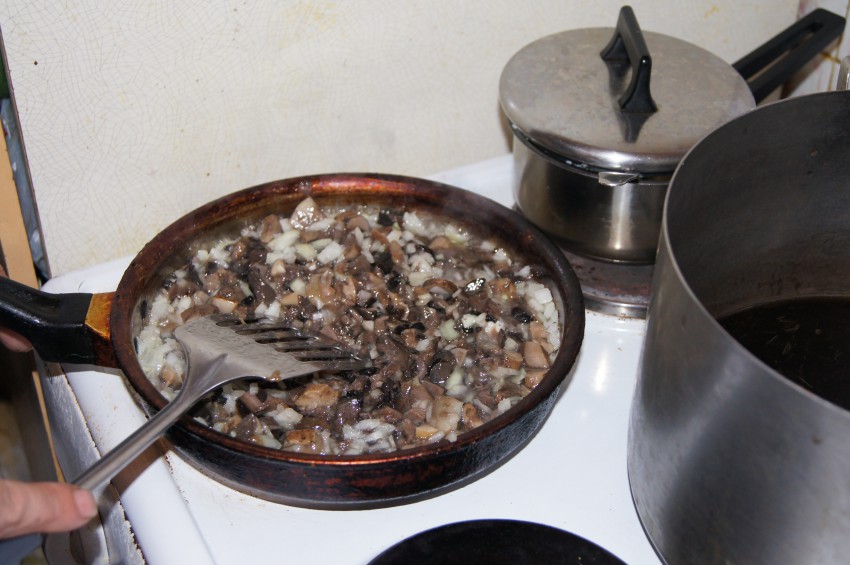 Третьего числа сего месяца сбылась моя мечта, и я с одним из блогеров «Привета» выбрался в лес на «тихую охоту». Грибов, действительно много, всяких и разных, но фото выкладывать не стану, по причине того, что их на Привете и без моих работ хватает. Вобщем запасаемся следующими продуктами: мясо (в моем варианте нежирная свинина), грибы (уже сваренные), лук, чеснок, растительное масло, соль, перец (в принципе можно любые другие приправы по своему вкусу). Так же необходимо наличие примерно полутора часов свободного времени :-)