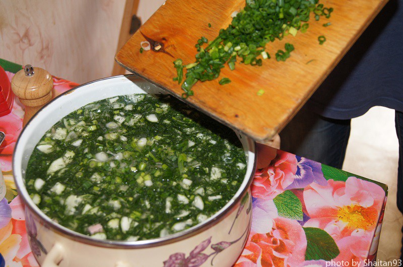 Напоследок засыпается мелко порезанный оставшийся зеленый лук.