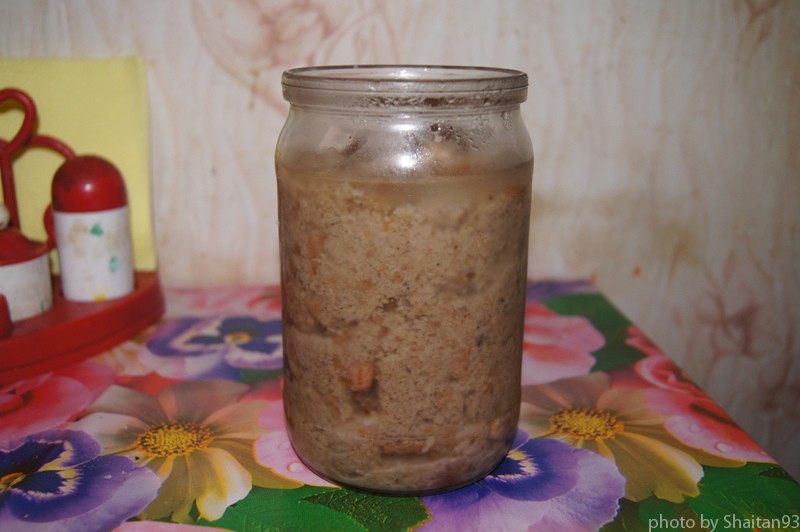 Да, я обычно беру одну булку хлеба. Можно «пряный» (ну тот, который «Бородинский»), только тогда надо немного изюма в зелье добавить, где-то одну — полторы столовых ложки.
