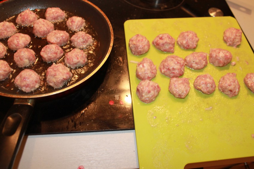 Затем катаем фрикадельки размером с грецкий орех.кладем их на поднос смазанный раст. маслом и на мин30 в холодильник