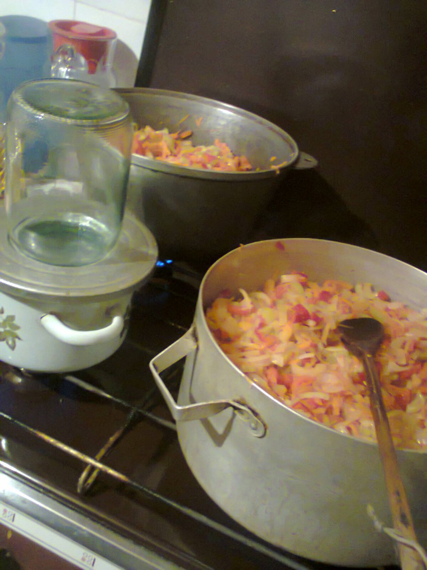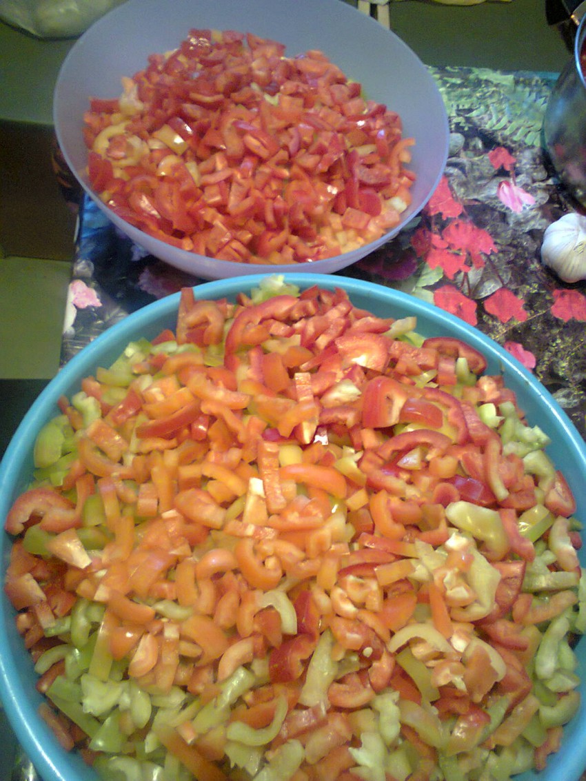 . И самый трудоемкий процесс — нарезка перца, заняла не один час (я просто не люблю перец нарезанный пластинками, а так, каждый волен делать как ему нравиться)