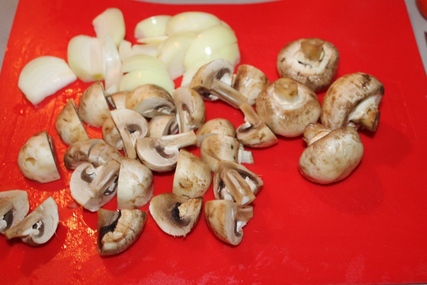 Дальше лук и шампиньоны