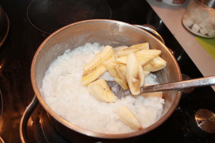 2.После того как вода выкипела добавляем кокосовое молоко (И получаем очень вкусный запах) накрываем крышкой и даем пропариться рису буквально мин 10 на самом маленьком «огне»