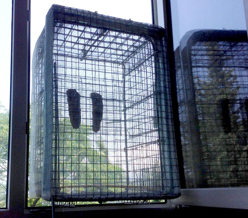 И вдруг среди привычных криков и лозунгов «долой!» увидел я прекрасные фото выловленной рыбы. Сейчас хотел найти, но эти фото были выставлены во время обсуждения не в «Охота и рыбалка». А я не догадался скопировать. Не помню месяц, но улов запечатленный на фото, причем нескольких наших блогеров, вызвали у меня бешеную зависть и невероятное желание срочно ехать на рыбалку. С этими мыслями бросаюсь спать, дабы наутро собрать коллективчик и рвать когти за добычей. Да… заснешь тут! Перед глазами рыба, рука аж чувствует трепетание удочки при выводке этак килограммчика на....! И тут мелькнула мысль о необходимости сохранения будущего КРУПНОГО улова. Ворочаясь, переключаюсь на эту волну. Понимаю, что кроме морозилки ни чего нет. Ранее, давно уж, вялил рыбу, мясо. Но то просто были маленькие конструкции из пары квадратов проволоки и марли. Приходит мысль, пока еще не осознанная, не созревшая: немедленно посмотреть по сусекам что там у меня имеется в наличии для устройства сушилки. 2 часа ночи! Понимаю что это влияние моих вновь народившихся «Мышей», но знаю что не засну пока не посмотрю. Любимое предазартное состояние души. Нахожу пару кусков сетки с ячейками 5х5 и 2.5х2.5, оставшиеся от ремонта ванной и старую клетку попугайчиков. Совершенно случайно в руках оказались кусачики… Через час, откусив лишнее, согнул крой и получил ящик без крышки. Помните как детей учат делать из картона коробочки? Ну, думаю, сейчас закреплю стыки, а завтра куплю марлю, обтяну и за рыбой! Закрепил. Но конструкция весьма получилась на мой взгляд хлипкой, не приспособленной к тяжести будущего БОГАТОГО улова. (Ведь вспоминаю фото!) Нужен каркас. Пришлось погубить спицы и соединительные муфты, купленные уж год назад, когда пришла очередная сумасбродная идея сделать посреди комнаты висячие с потолка полки. К счастью не реализованная. Первую спицу загубил. Резьба, сталь. Лопается. Нагреваю на газе, гну. 4 буквы П, которые соединяю муфтами уже внутри своего ящика. Устойчив. Уже утро. Сна ни в одном глазу. Бегу за марлей, но покупаю металлическую противокомарную сетку, лак двухкомпонентный для металла на авторынке, нержавейку проволоку для шпажек. Пришлось сотворить еще и крышку, которая упорно не хотела одеваться на ящик, цепляясь за сетку и имела весьма крупные проходы для насекомых. Пришлось края обклеить на лаке атласной лентой шириной 10 см. Потом, обернув края крышки полиэтиленовыми мешками дабы не прилипли, залил щели силиконом с напуском на край крышки.Крышка одевается как по маслу. Комар не проскочит! К вечеру сушилка со съемными складными полками, шпажками была готова, покрыта лаком. Я специально принес ее и выставил на окно для фотографирования. Она мне нравится. Вспомните как я по хорошему завидовал опубликовавшим фото своих уловов: