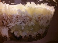 Так же, необходимо по-вкусу смазывать чередующиеся слоя майонезом.
