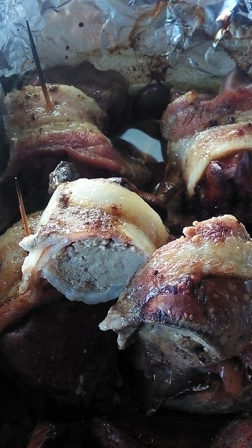 Я бы к куриной печени добавила коньяк при приготовлении… а бекон бы взяла копчененький…