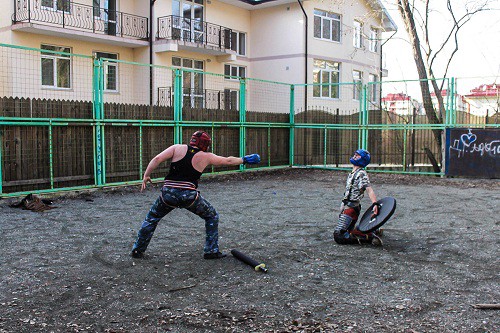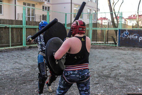 Казаки, же после митинга отправились в штаб общества «Бытха», где после небольшого праздничного чаепития отправились на тренировку казачьего клуба исторической реконструкции «Даховский редут»