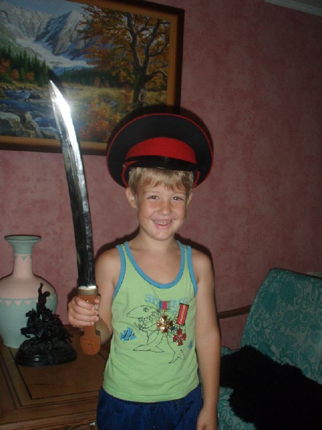 Еще и мальчику автомат, винтовку и пистолет дали.А вдруг он казак?