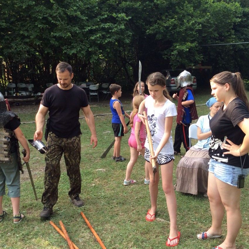 В один из дней приехали к детям и мы, с тематической программой про воинское искусство и быт Древней Руси.