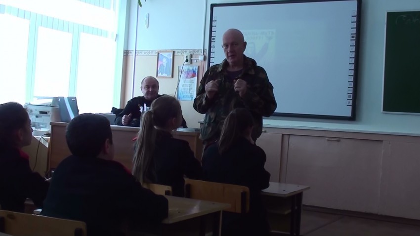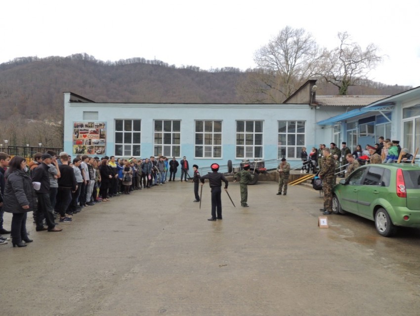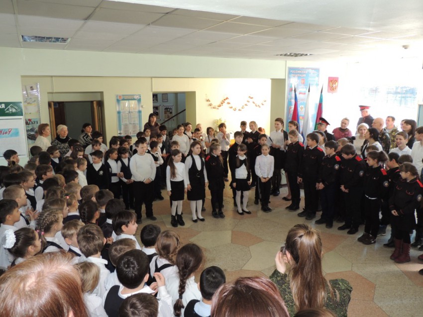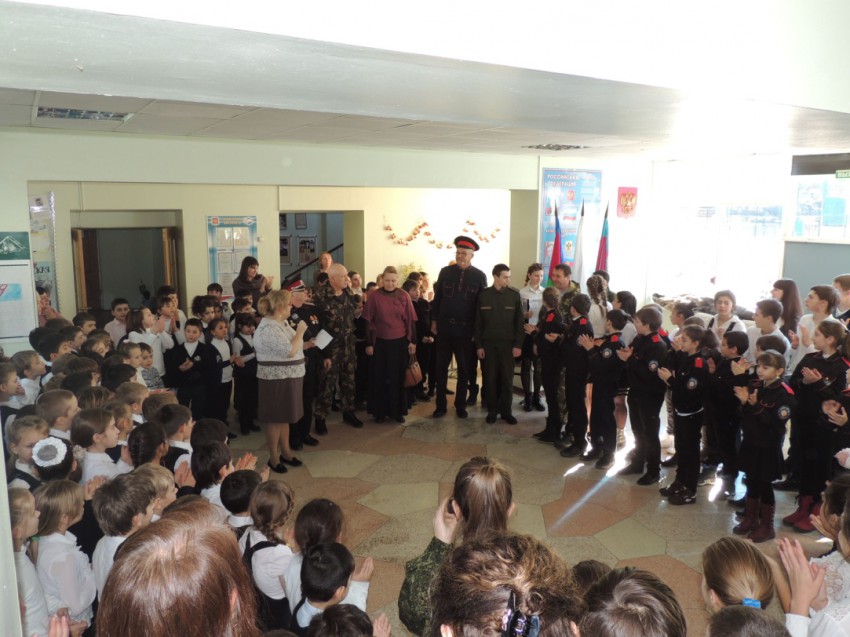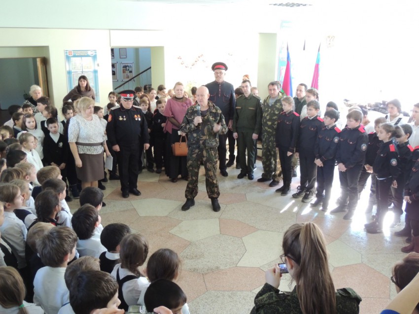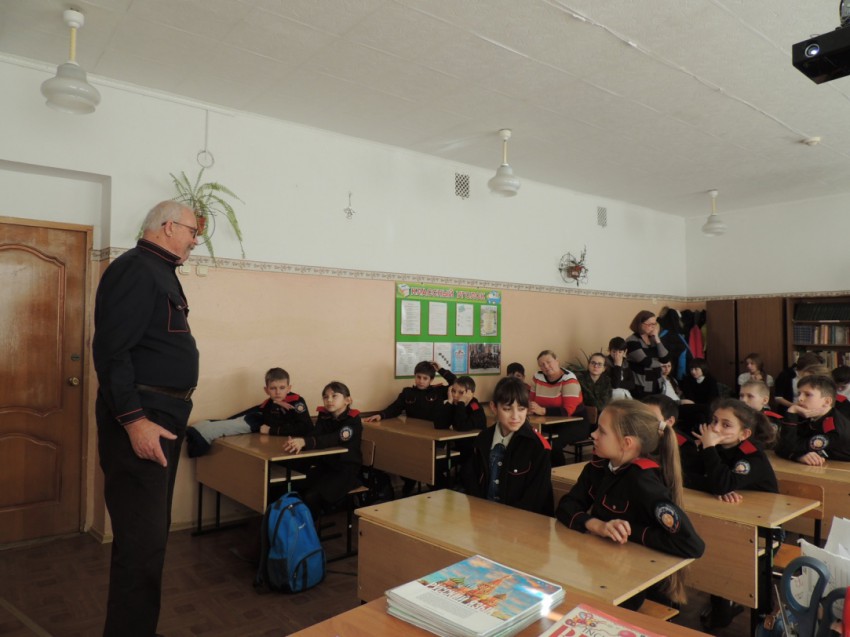 После торжественного открытия месячника на уроке патриотического воспитания перед пятиклассниками с рассказами о воинской службе выступили старые казаки