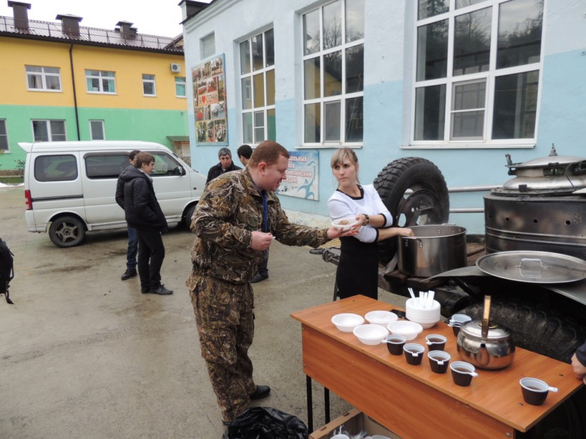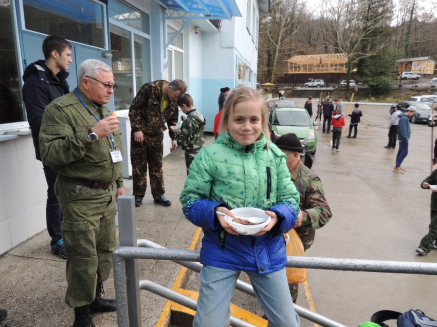 Перед началом соревнований необходимо подкрепиться солдатской кашей