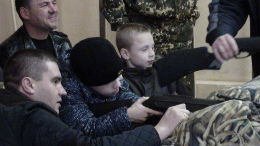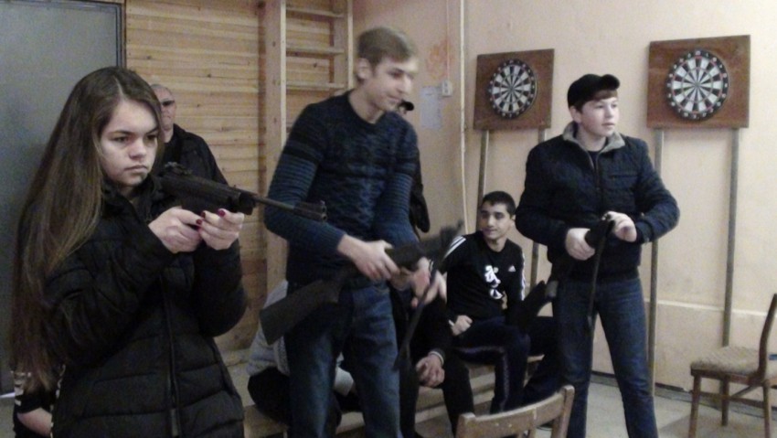 После общего инструктажа перед строем младшая группа казачат школы № 81 продемонстрировала свои достижения во овладении оружием.