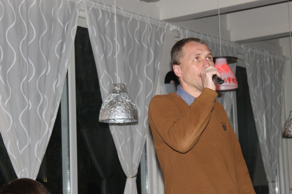 Фотограф Олег Снигирёв и арт-директор и великолепный саксофонист Евгений Пометунов исполняли песни по караоке