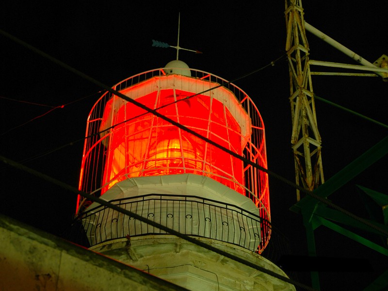 Наверх ведет узкая железная лестница, витая и почти вертикальной крутизны. Ощущение такое, как будто находишься в крепостной башне, где притаился призрак старины. Дневной свет с улицы пробивается сквозь немногочисленные маленькие круглые окошки в стенах.…Последняя ступенька башни, и совсем узкая горловина железного люка. Кажется, в него может пролезть лишь маленький ребенок. Но нет — протискиваюсь наверх, на круглую площадку. И вот оно, в самом центре — сердце маяка. Лампа мощностью 1000 ватт, дающая постоянный свет, спрятана за прозрачным стеклом, ее окружает линза, состоящая из отдельных стеклянных колец толщиной примерно 2 см, примыкающих друг к другу и имеющих специальную форму, которая уменьшает массу самой линзы. Лучи от лампы почти параллельны и направлены горизонтально, высота линзы около трех метров, фокусное расстояние — 920 мм. Изобрел ее Огюст Жан Френель (1788-1827 гг.) — член Парижской академии наук, один из основателей волновой оптики. Луч маяка виден в море на расстоянии 17 миль (почти 32 километра).