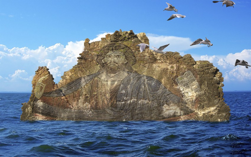 Лик Иисуса выполнен в виде иконы на скале, нависающей надо дорогой. Кто и когда его написал «товарищи ученые» опять точного ответа не дали. Кто-то считает, что икона написана во времена строительства храмов Южного, Среднего и Северного, кто-то — что в 19 веке, а кто-то утверждает, что это современная подделка для туристов.