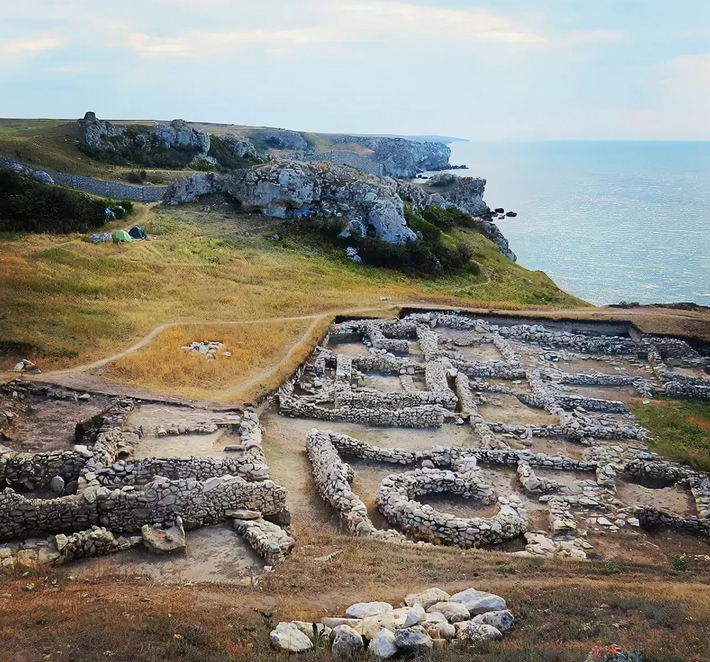 Это был комплекс хозяйственных и культовых построек, окруженных оборонительными сооружениями. Основу комплекса составляли одно и двухэтажные дома с двориками, хозяйственными ямами и винодельней. Археологи обнаружили и раскопали здесь зернохранилище цилиндрической формы глубиной около пяти метров и емкостью сто кубометров. Под руинами находилось святилище с алтарями и жертвенным столом.