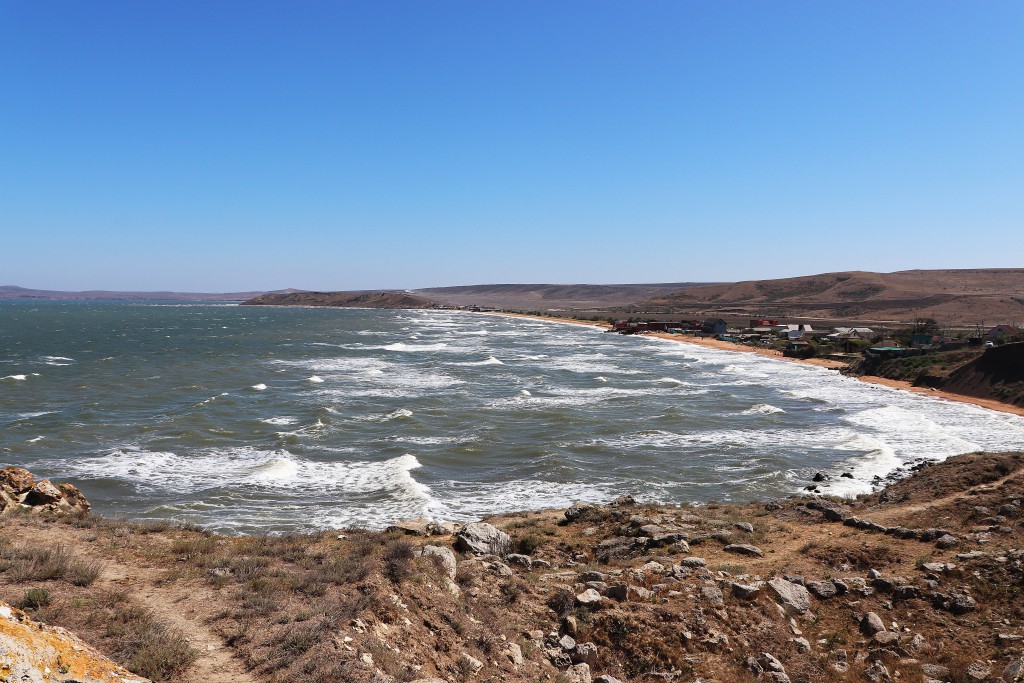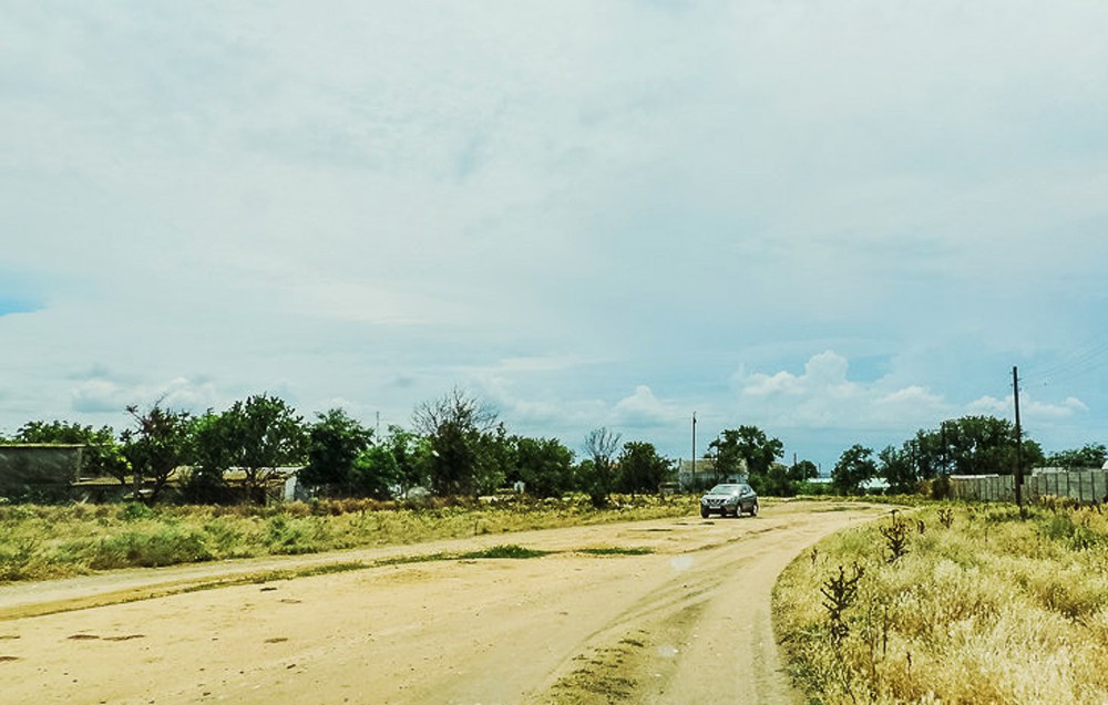 Самая правая, от Керчи до Курортного (это где стоит метка) исключалась сразу. По рассказам, эту дорогу приготовили к асфальтированию и засыпали крупной, острой щебенкой. Там и колеса порезать можно или получить камнем в лоб от встречной машины. Так в итоге и оказалось — кусочек этой дороги мы зацепили во время объездов побережья. Никому не советую там ехать. Во всяком случае, пока.