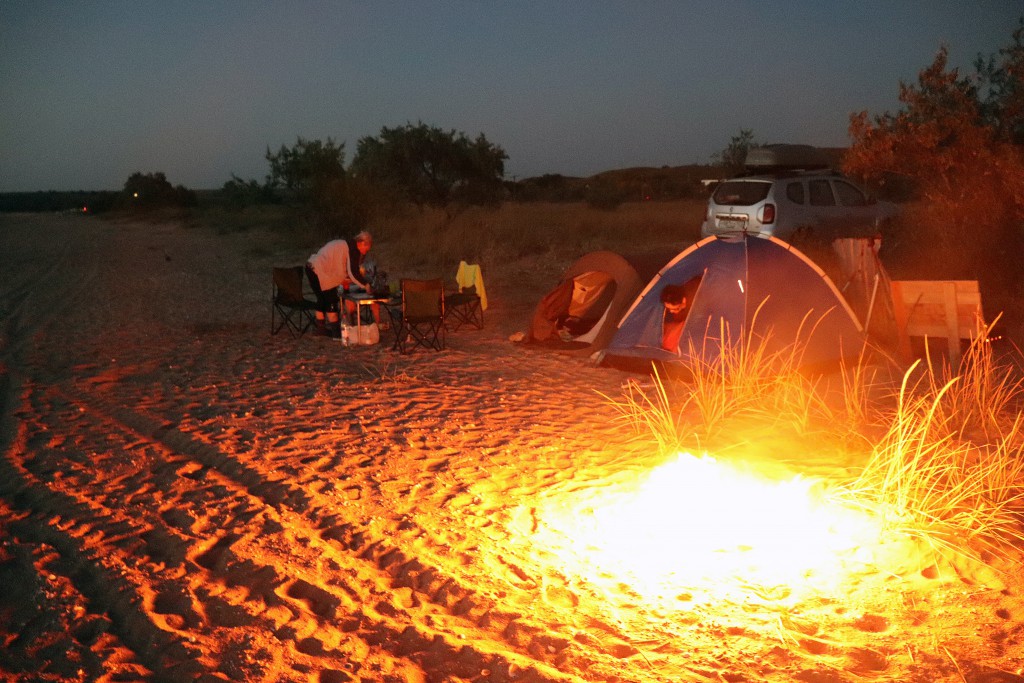 Конец дня и вечер был занят обустройством места, установкой палаток, стола, мангала и ужином. Встретить вечер на берегу моря, любуясь закатом — что может быть лучше в этой жизни.