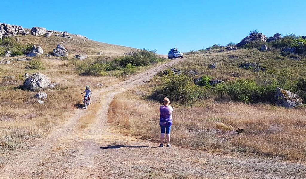 Поехали по третьей дороге через Чистополье на Золотое. А так как после первой ночевки пришлось съездить в Коктебель (об этом позже), последующие разы ездили в четвёртой дороге через Новониколаевку, которая выводит на трассу «Таврида». Она оказалась самой лучшей дорогой, чтобы попасть в Караларский парк к Генеральским пляжам.