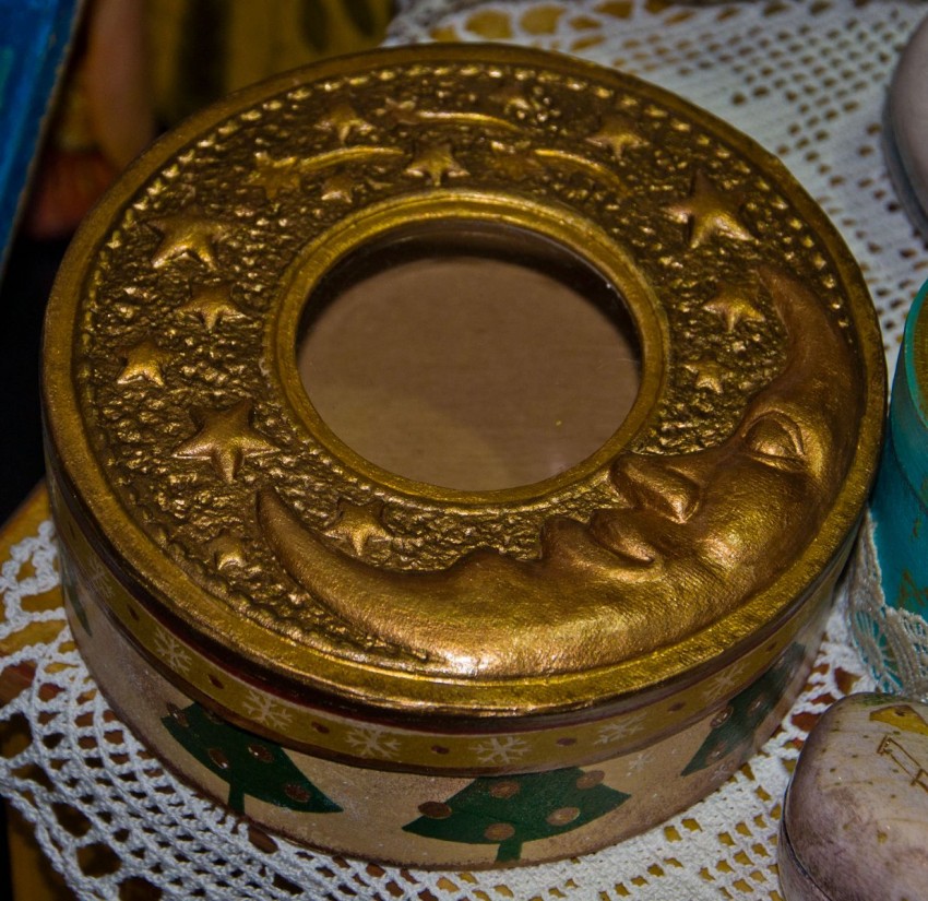 Такие живут потом в доме годами. Декоративные новогодние тарелки, подсвечники.