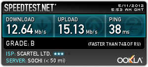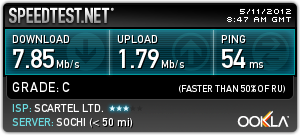 Скорость, конечно, не та, что была на ночных тестах. Но оно и понятно: по ночам ограничения по тарифу не было. Теперь включили.