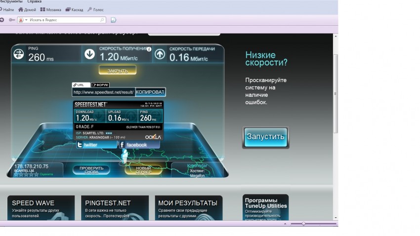 Один из последних спидтестов на сети mobile wimax, работает довольно неплохо, как бы говоря – я еше на много способен, рано меня со счетов скидывать ))))