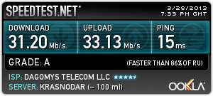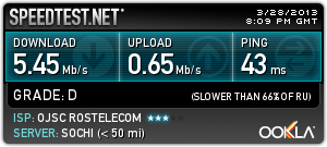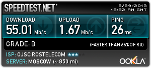 ну у меня кажет 49-50 в обе стороны и пинг 7
