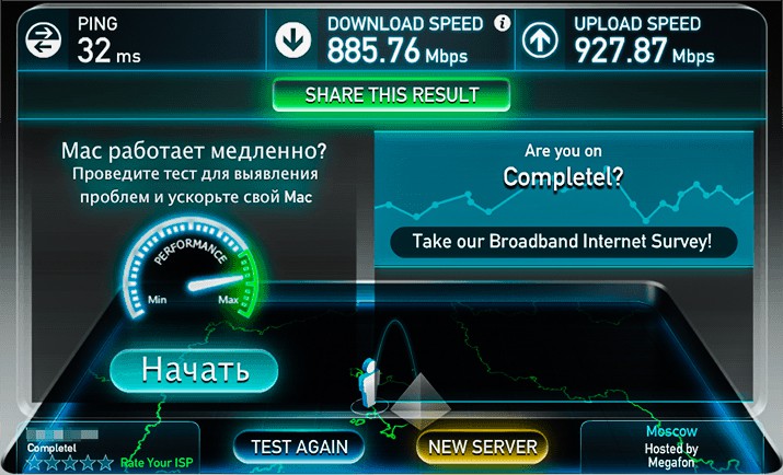 и да скорость вообще не упала. как показывала возле шкафа(оптики) так же и через 5 км на приеме. а главное задержка (пинг) очень низкий