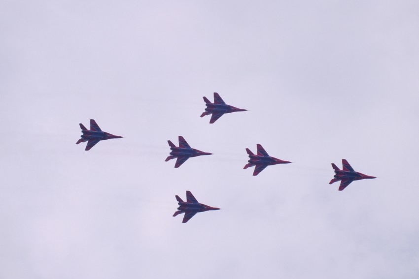в небе трудились пилотажные группы- наши и иностранные. Группа «Русь» на L-39