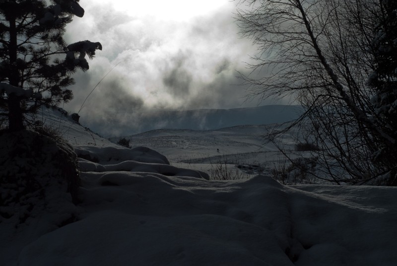 Во время мини-путешествия погода менялась несколько раз, то набегали тучи и спускался туман, то шел снег и тут же выходило солнце.