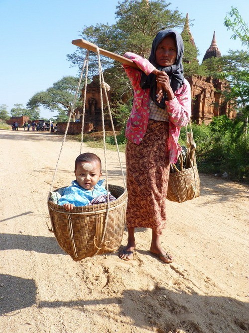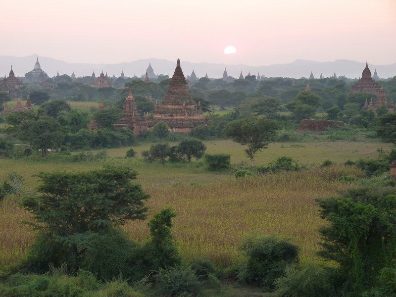 Вечером приплыли в Баган. В гостиницу нас отвезли на экзотической коляске, запряжённой лошадью. На другой день ездили по храмам. Коляска с кучером обошлась нам в 10 000 чат. На троих это совсем немного. Говорят, что храмов здесь около 4 000. Это проверить невозможно. Зато можно бесконечно наслаждаться пейзажем больших и малых пагод.