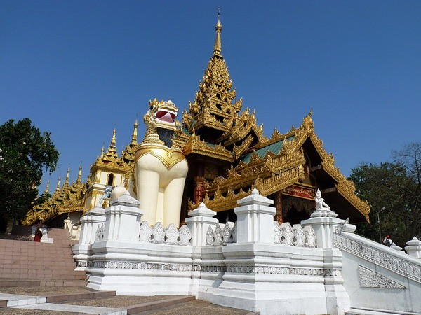 Утром решили осмотреть пагоду Шведагон, которая похожа на городок из маленьких и больших храмов с необыкновенной архитектурой. Вход 5 $. Снимаем обувь и входим в этот музей под открытым небом. Шведагон имеет 4 входа с широкими ступенями и расположен на холме высотой 50 м., высота главной ступы – 99 м. Всё сверкает золотом. Поражают роскошью и великолепием многочисленные статуи Будды. Расписные узоры и скульптуры диковинных животных — персонажей из древней летописи буддизма.