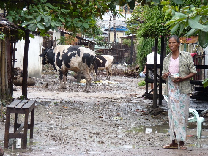 Столица Бирмы, Янгон, архитектурой, машинами, товарными лавочками напоминает Сухуми 70-х годов плюс Абхазскую разруху 90-х годов. Местные люди часто украшают лицо пятнами-белилами.