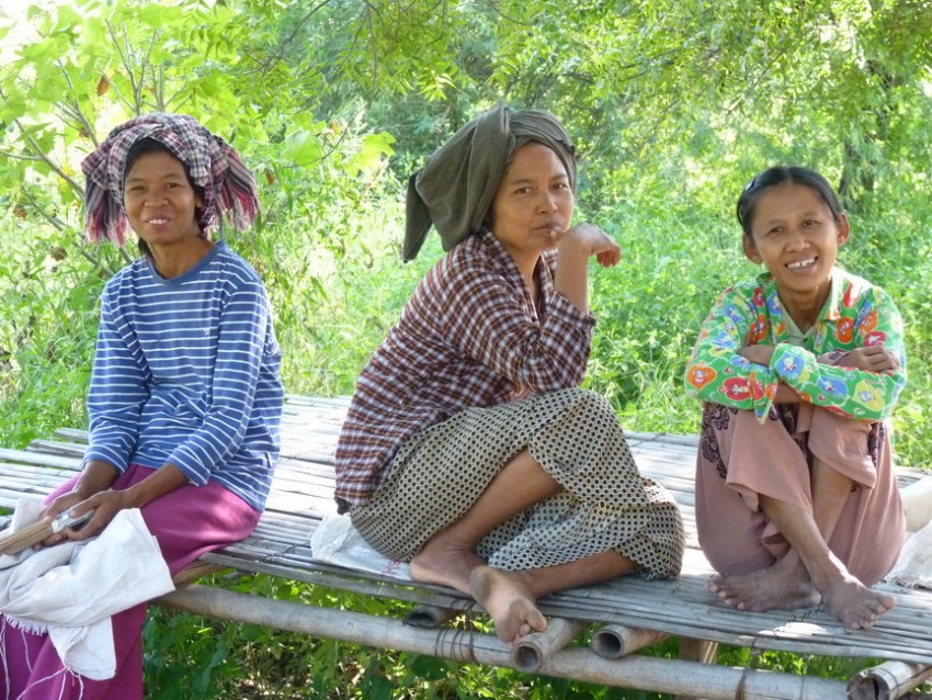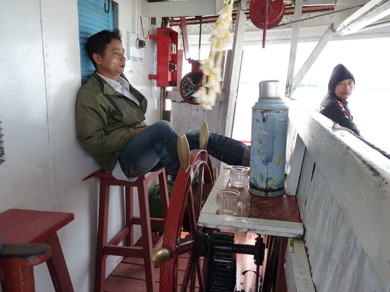 Само уже путешествие на этом кораблике стоит многого. Запомнилось на всю жизнь. На половине верхней палубы сидят на пластиковых стульях иностранцы, вторую половину занимают бирманцы, кто побогаче и поцивильней. На нижней палубе – живописно расположились местные жители с тюками, корзинами, овцами, курами и разными фруктами, монахи везли огромную статую Будды. В рубке весело. Играет музыка. Матросы беззаботно жуют бетель (у многих от этого зубы красные), а рулевой, судя по его лицу, в состоянии нирваны, крутит штурвал одной ногой.