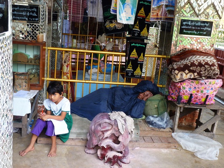 Нищета простых людей, доброжелательных и искренних, ещё не испорченных бизнесом, грязь на улицах, убогие уличные лавки и зачастую полуразваленные заросшие кустами травы здания соседствуют с золотыми куполами буддийских храмов и скульптурами неповторимой красоты. Мьянма, или, как её раньше называли, Бирма, имеет свой неповторимый колорит. Ещё недавно там был военный режим, и она была закрыта для туристов. И, вот, двери распахнулись и мы увидели, что это огромный чудесный музей под открытым небом.