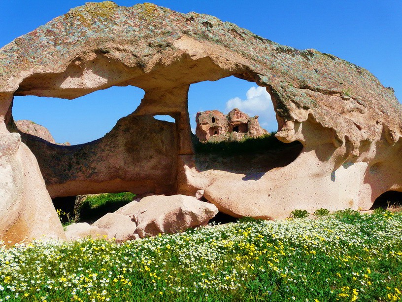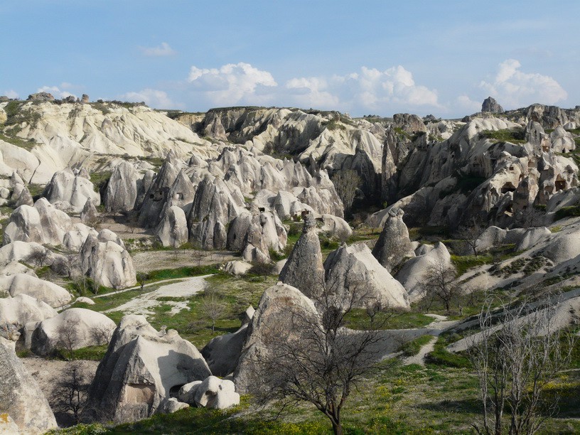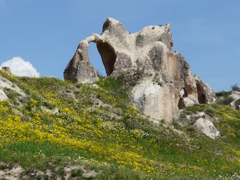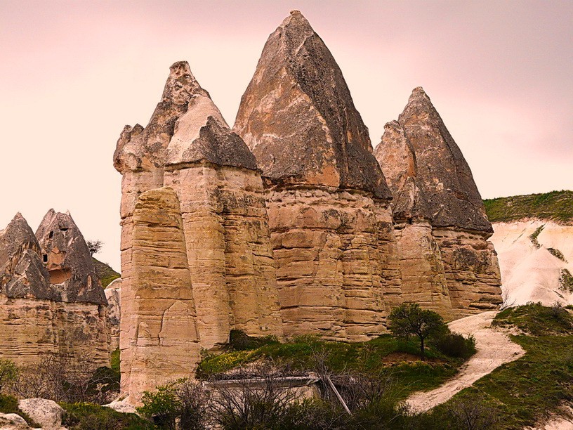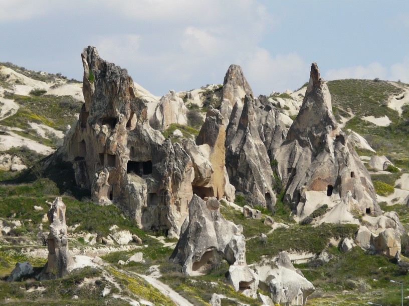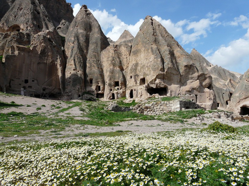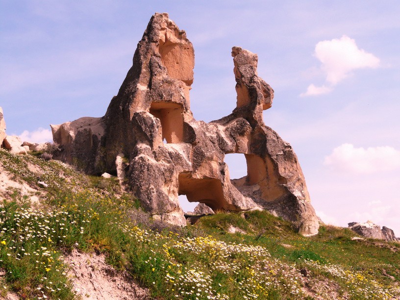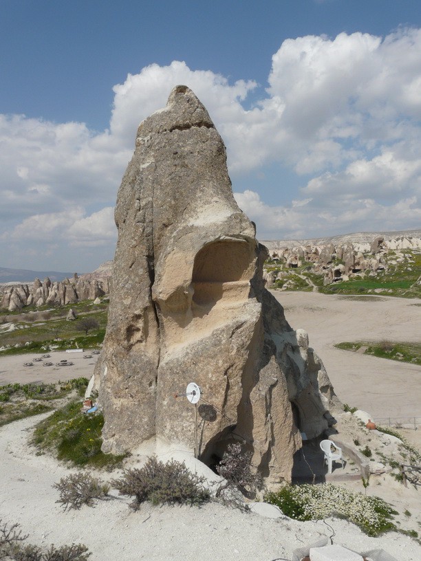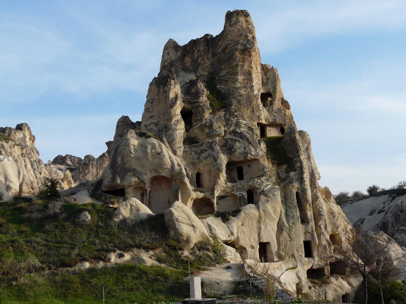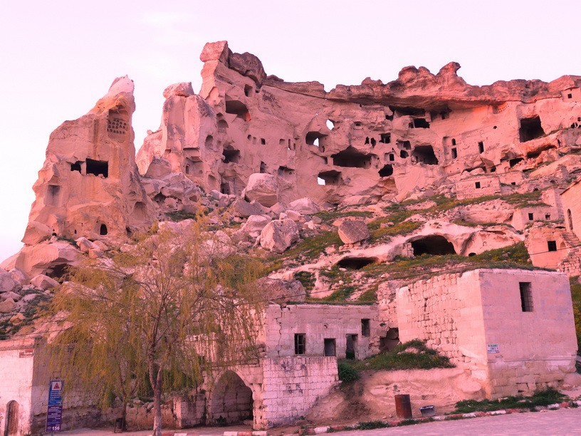 В наше время в этих скалах предпримчивые турки иногда делают номера гостиниц. В глубокой древности монахи выдалбливали в этой мягкой породе свои кельи.