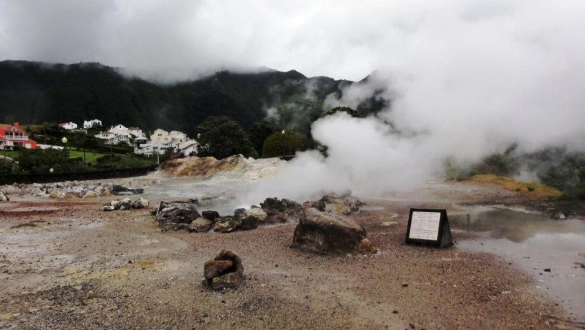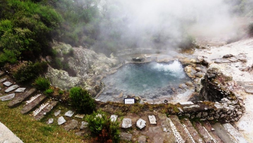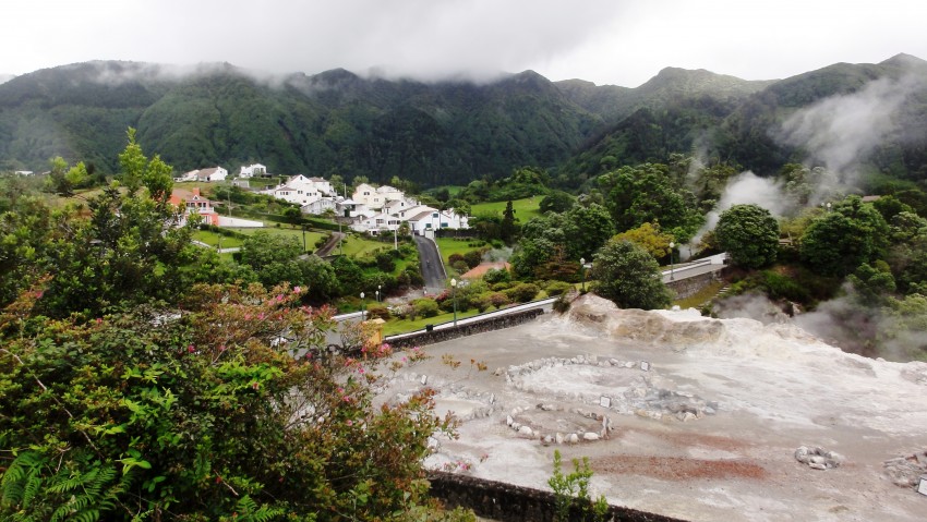 Долина гейзеров — это не просто великолепный пейзаж. Вода из недр Земли содержит в себе чуть ли не всю таблицу Менделеева. Термальные и минеральные воды используются жителями острова в лечебных целях с XVII века. Говорят, что воды долины гейзеров могут исцелить множество заболеваний, таких как заболевания органов движения и опоры, дыхания, пищеварения, кожи и. т.д. В следующий приезд на Сан-Мигел остановиться в бурлящем и пыхтящем в такт дыханию планеты Фурнаше, и сполна насладиться целебными свойствами термальных источников – заманчивая перспектива на будущее. А вот минералки — похожей на наш нарзан – тут же набрали и с удовольствием выпили.