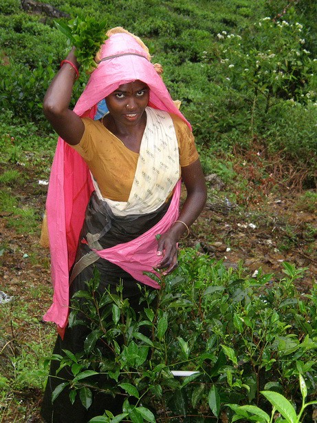 Огромная белая ступа на полпути. Ниже плантации чая, даже под дождём женщины в сари собирают молодые листочки.