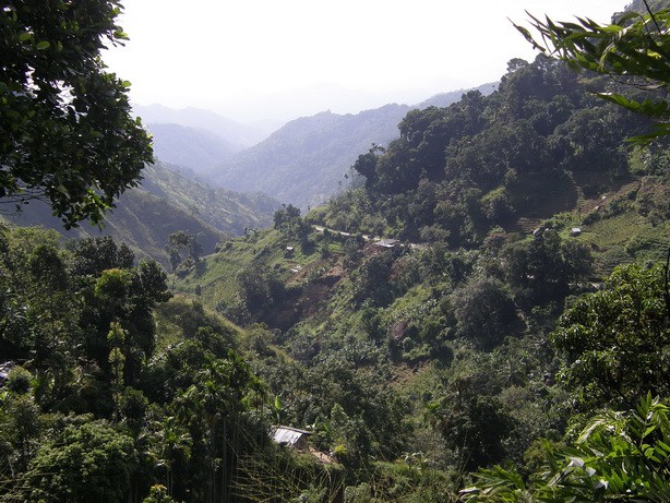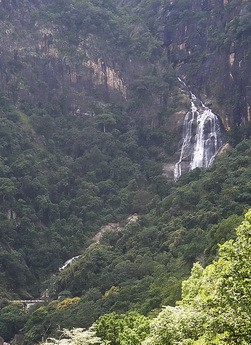 Поезд ехал по самым хребтам. С двух сторон открывались панорамы гор, внизу белели домики, возделанные террасы, водопады, эвкалиптовый лес с подлеском из древесного папоротника.