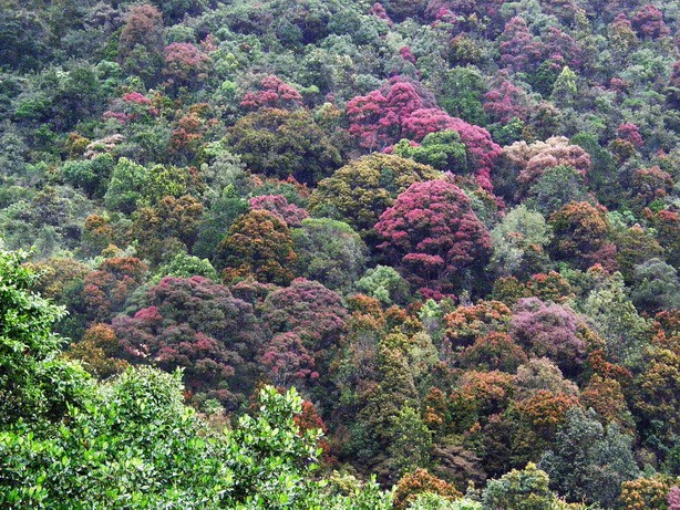 затем увидели гималайский красный рододендрон (деревья), и, наконец, поднялись на хребет,