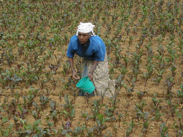 Его жена на огороде что-то сеяла между ростками свеклы.