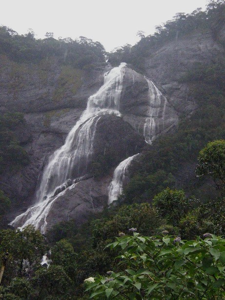 Близко к водопаду подойти нам не удалось, т.к. очень круто и скользко. С нашей точки обозрения вид был отличный. Водопад с двумя потоками, высота примерно 80 метров. Вокруг красивое ущелье, заросшее цветущими деревьями и лианами. Поднимаясь назад, мы увидели ещё несколько водопадов.