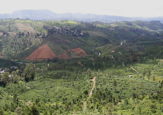 Дорога вилась серпантином то вверх то вниз. Кругом чайные плантации с табличками фирм Дилмах, Липтон и т.д. Шри Ланка занимает 3 место в мире по сбору чая, и первое место – по экспорту. 90% произведённого чая отправляется на экспорт. 10% — это пыль, которая даже не заваривается. В основном эту пыль и продают в магазинах страны.