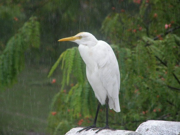 Но мы туда не пошли, так как начался дождь. Мы из номера смтрели на цаплю, а она — на нас.
