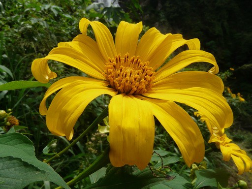 Огромные жёлтые цветы, чем-то напоминали цветы топинамбура, колосилось высокое просо, цвели герберы и какие-то кустарники.