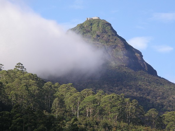 Говорят, что с этого места вознёсся Будда (отпечаток его стопы будто бы можно разглядеть на вершине). Христиане говорят, что, когда Бог изгнал Адама из рая, то здесь человек впервые ступил на землю. Считается, что это самое близкое место от земли к небесам (буквально рукой подать). На вершине стоит буддийский храм. Подняться надо до восхода солнца (к 6 часам утра). В это время открывается храм и по всей долине разносится звон колокола. По пути есть навесы, где предлагают горячий чай. Измаждённые крутым подъёмом туристы могут здесь отдохнуть. Поляк совсем выбился из сил, мирно сопел на лавочке, а его попутчики уже были на вершине.