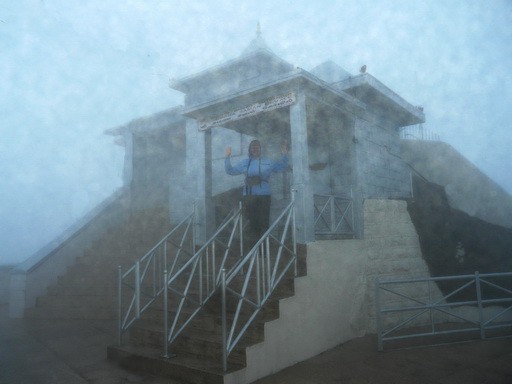 К 6 часам туманом заволокло всю округу и нас тоже. В тумане раздался звон колокола, и открылись ворота в храм. Мы успели замёрзнуть, ожидая рассвета. Надо разуться, чтобы зайти в храм. Гена остался снаружи, я всё же разулась (когда будет ещё такая возможность побывать тут) и вошла в храм.