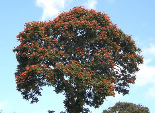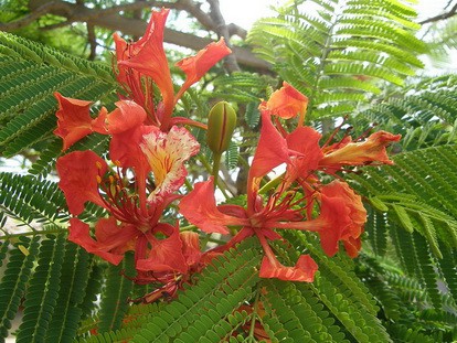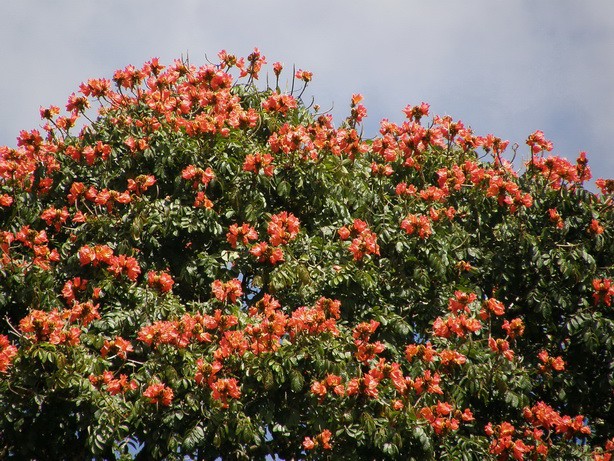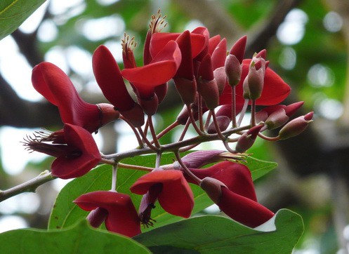 необыкновенные красные цветы на деревьях