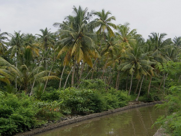 Мы подобрали несколько обломков кораллов. И пошли в этот день гулять налево от гостиницы. По дороге рассматривали садики с вновь отстроенными домами. В зарослях алоказии и кокосовых пальм были видны остатки разрушенных гостиниц и домов. Здесь волна цунами была до 3 метров. Многие люди спаслись на вторых этажах, однако, жертв тоже было много. В садиках росли бананы,